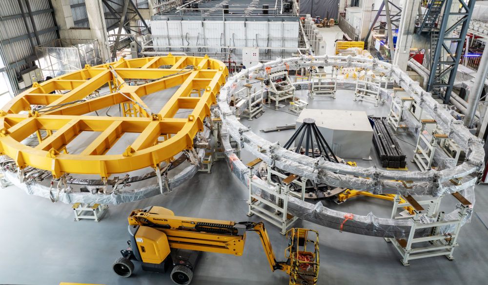 2024年5月27日在聚变堆主机关键系统综合研究设施(CRAFT)园区内拍摄的TF超导线圈生产线(无人机照片)。该研究设施将为未来中国聚变实验堆、工程堆的设计建设,搭建参数高、性能全、功能完备的综合性研究及测试平台。