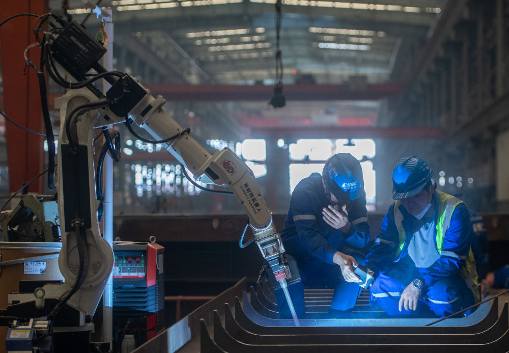 2024年5月16日,工作人员在湖北省武汉市新洲区武昌船舶重工集团有限公司查看焊接机器人焊接的焊缝。近年来,该公司围绕新型公务船、高端海工船、中小型绿色智能油化船和支线集装箱船等主建船型,积极推进数字化转型与智能制造,助力航运高质量发展。