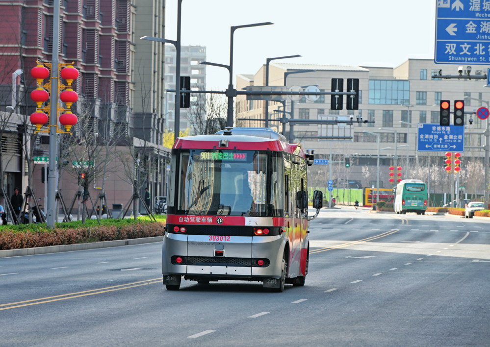 智能网联巴士在雄安新区容东片区道路上行驶(2024 年 3 月 29 日摄)牟宇摄 / 本刊