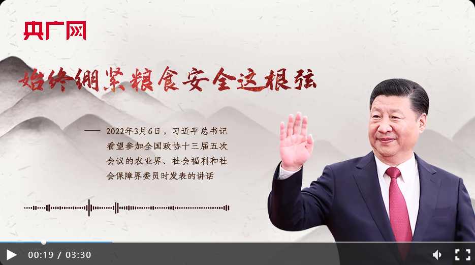 习近平:要未雨绸缪,始终绷紧粮食安全这根弦,始终坚持以我为主、立足国内、确保产能、适度进口、科技支撑。