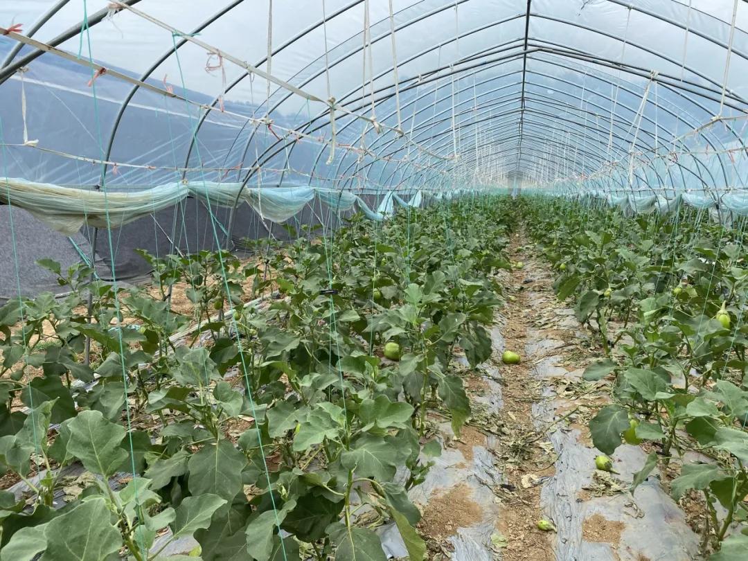 据冯卫兵介绍,自己建有21个斜面棚、23个钢管棚,今年种的是细长茄,市场行情比较乐观,预计一年给工人发放工资40余万,带动周边100余名村民就业。