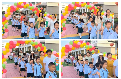踏着优美的音乐旋律,孩子和家长手拉手有序进场,缓缓走过彩色气球拱门,感受毕业的荣光和成长的喜悦。