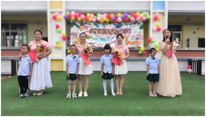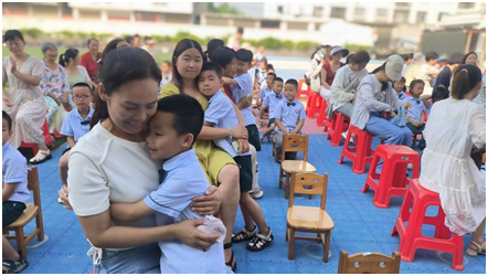 教师朗诵《永远的感动》:四年前,你们迈着蹒跚的步伐走进幼儿园,老师轻轻接过你的小手。一转眼,你们都长大了,变得聪明、懂事,学会了许多本领,即将从幼儿园毕业啦!请带着梦想出发,一路成长,一路阳光!