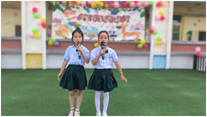 大四班孙希玥小朋友和大五班的孟想小朋友作幼儿代表讲话,她们对园长妈妈、幼儿园老师们和小朋友们表达了深深的不舍,也感谢老师三年来的教导与陪伴。
