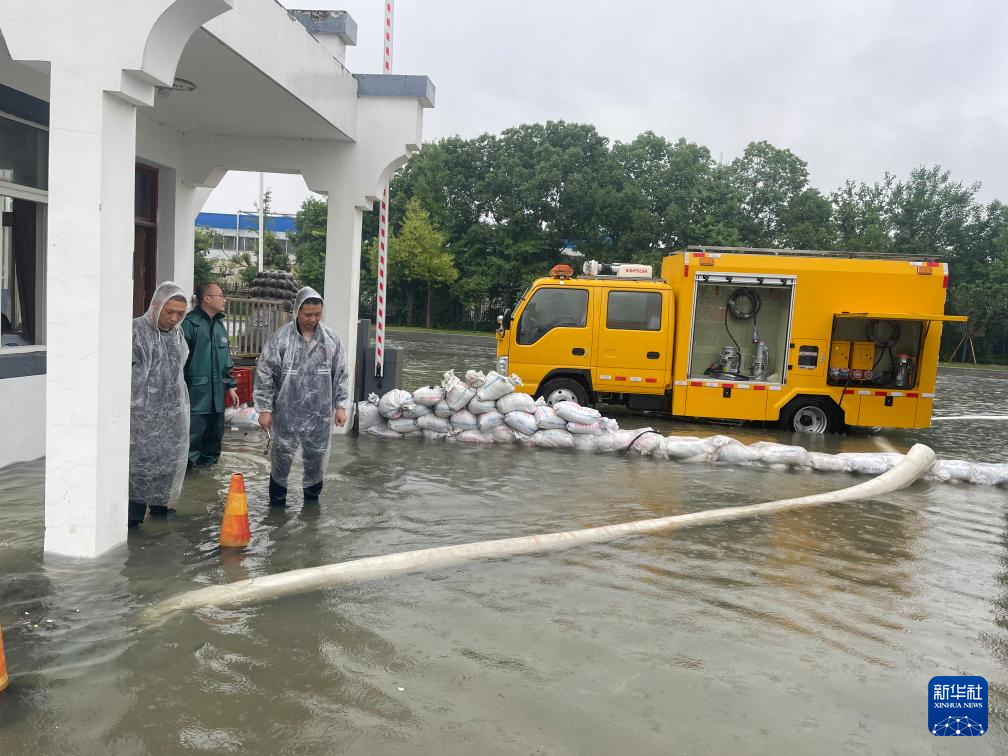 6月20日,黄山徽州经济开发区组织防汛应急排水车排出辖区企业厂区积水。