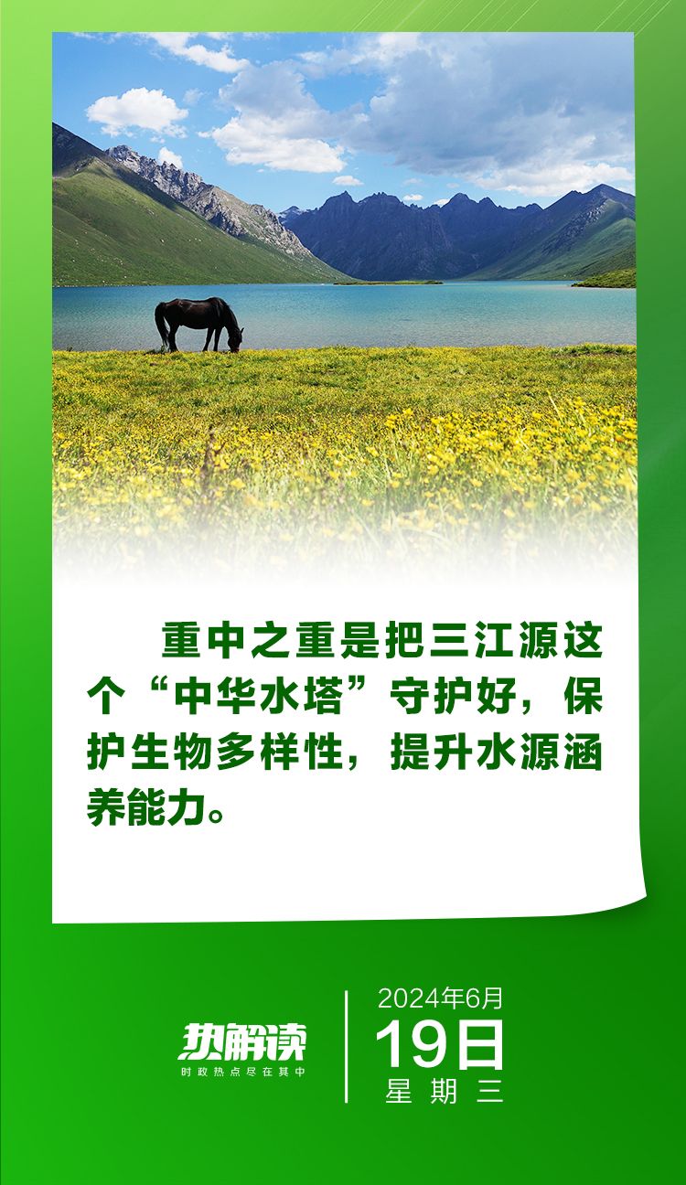 |热解读|“重中之重是把三江源这个‘中华水塔’守护好。”6月19日,在青海考察的习近平总书记听取青海省委和省政府工作汇报时特别强调。