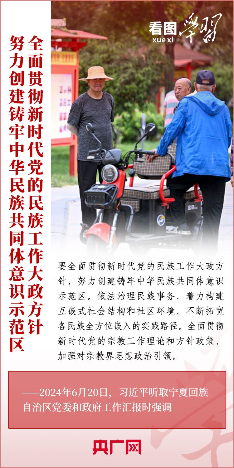 6月19日至20日,习近平总书记在宁夏考察,并听取宁夏回族自治区党委和政府工作汇报。总书记对宁夏工作取得的成绩给予充分肯定,指出宁夏要以铸牢中华民族共同体意识为主线,以黄河流域生态保护和高质量发展先行区建设为牵引,加快建设经济繁荣、民族团结、环境优美、人民富裕的美丽新宁夏,奋力谱写中国式现代化宁夏篇章。一起来学习!