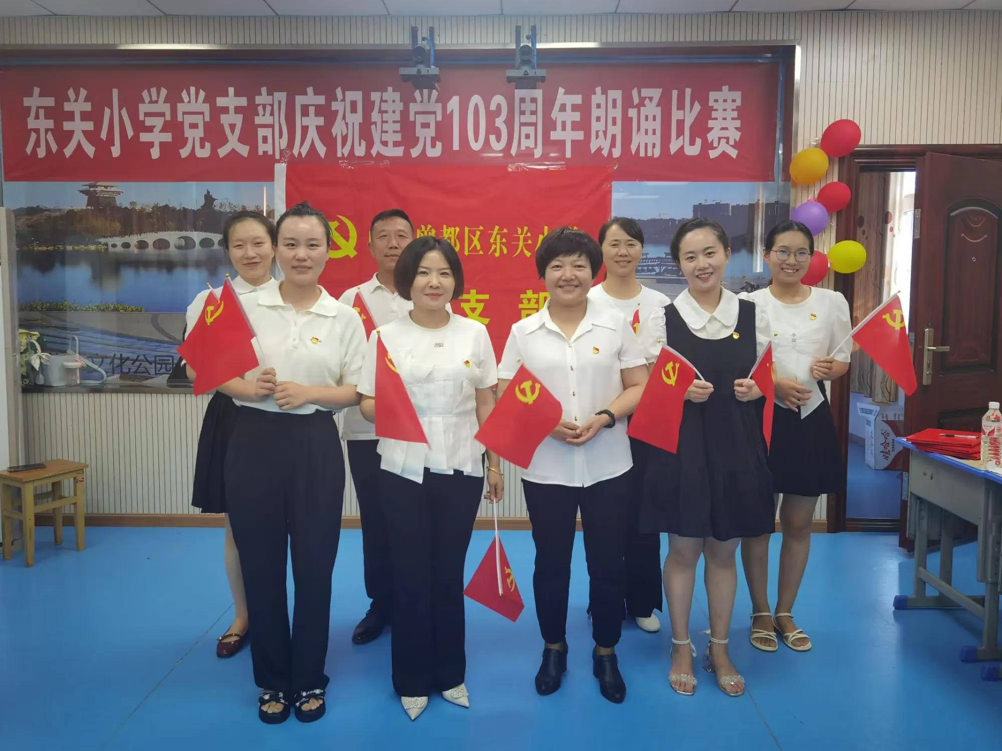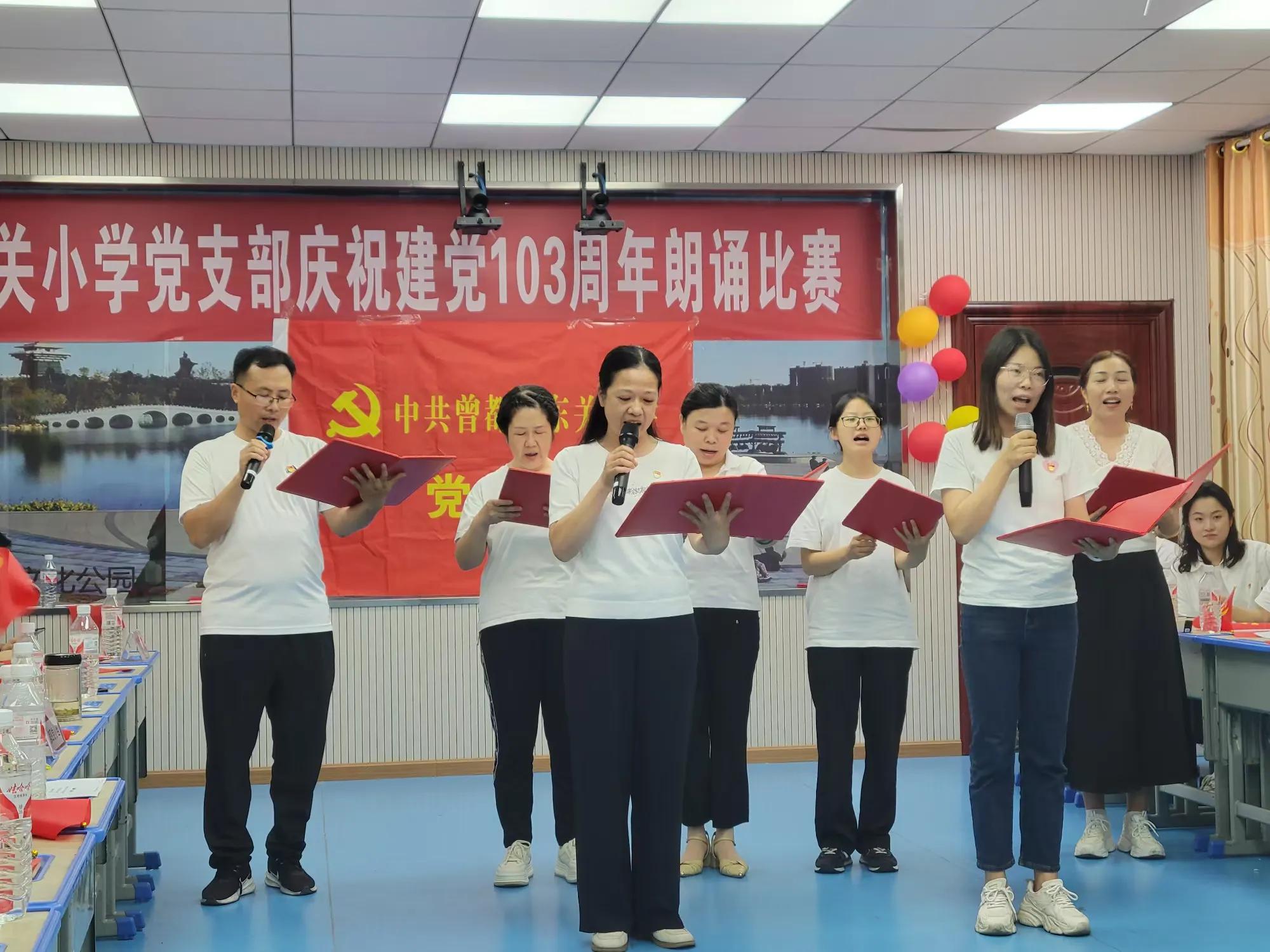随州新闻网讯 (通讯员熊炳俊、晏张飞)为庆祝建党103周年,重温党的光辉历史,继承和发扬党的光荣传统和优良作风,进一步增强党组织的凝聚力和战斗力,激励广大党员坚定理想信念,充分发挥党员的先锋模范作用,强化党员教师的责任意识和政治担当。6月27日下午,东关小学党支部举办了庆祝建党103周年朗诵比赛活动。