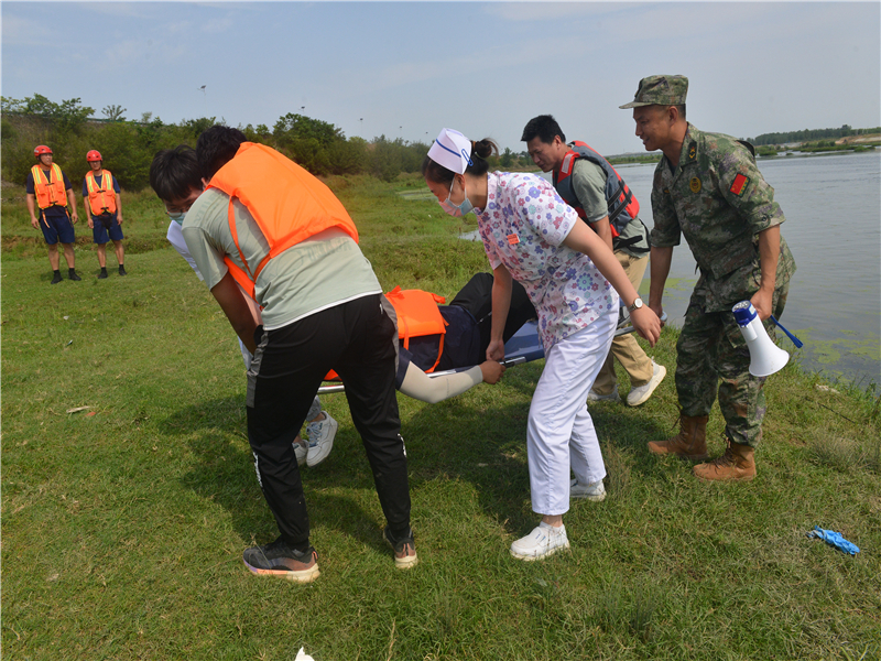6月27日,曾都区淅河镇举行2024年防汛抢险救援综合演练,该镇在幸福村府河河道开展防洪抢险、被困群众营救、受灾群众救治、河坝抢险等演练,以提高人民群众防洪抢险的能力和自我保护的意识。(通讯员 王涛摄)