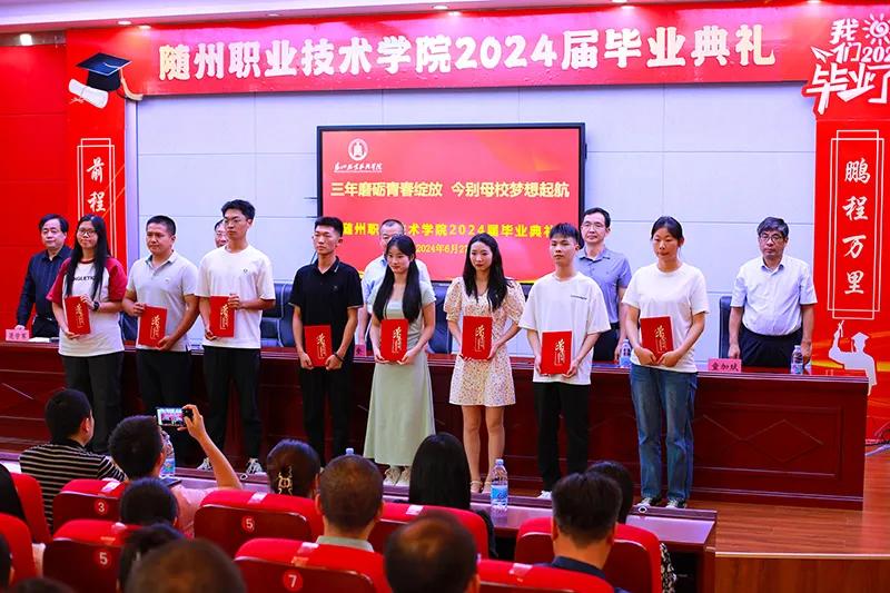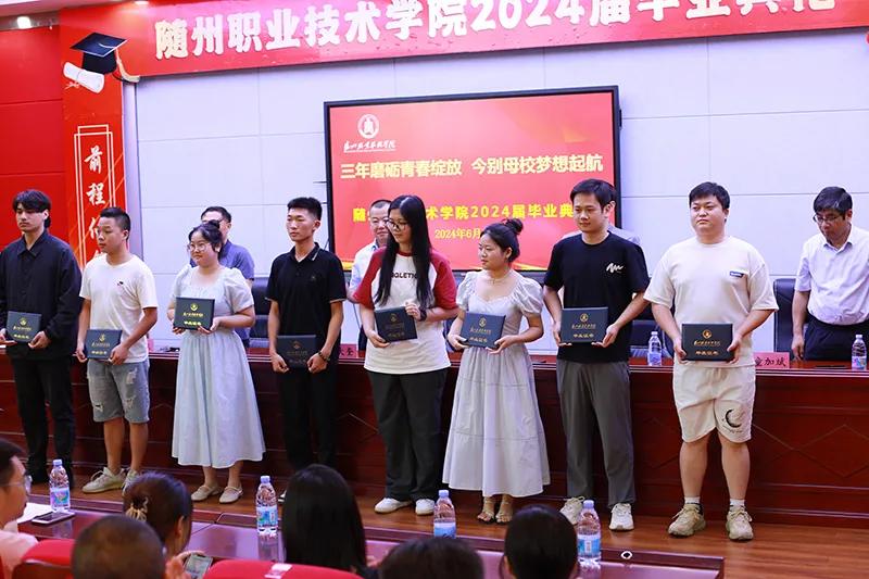 典礼在庄严的国歌声中拉开序幕。党委学生工作部部长钟守兵宣读了《关于表彰2024届优秀毕业生的决定》。校领导为优秀毕业生代表颁发了荣誉证书,为2024届毕业生代表颁发了毕业证书。