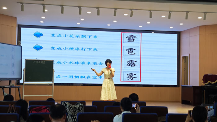 2023年随州市青教赛一等奖获得者烈山湖学校夏素老师带来一节示范课例《雾在哪里》。随县教研室副主任李家彬以指导夏素老师参赛的经历为例,说明青教赛中教学设计、现场展示、教学阐释三个环节的注意事项与竞赛策略。一众教师通过李家彬主任幽默风趣的讲解,了解了从评委角度看到的青教赛,明确了自己准备参赛的必要性,深度思考了自己的备赛方法。