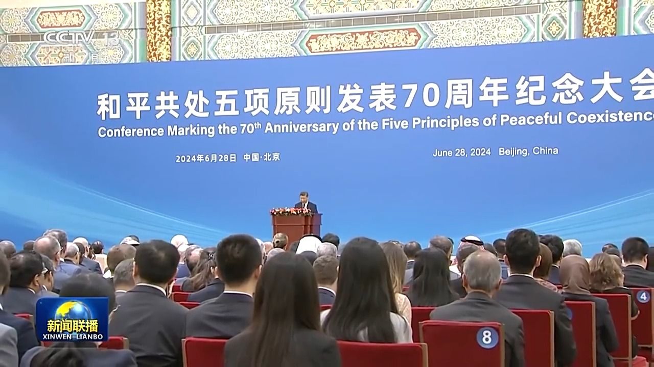 6月28日,国家主席习近平出席和平共处五项原则发表70周年纪念大会,并发表题为《弘扬和平共处五项原则,携手构建人类命运共同体》的重要讲话。习近平主席在讲话中全面阐释和平共处五项原则的精神内涵和时代价值,在世界百年未有之大变局中指明构建人类命运共同体的前进方向,发出“全球南方”同世界各国人民共创美好未来的时代强音。与会国内外人士表示,习近平主席的重要讲话饱含着对历史的深邃思考、对现实的深刻分析、对未来的长远谋划,必将对推动各国同心协力建设更加美好世界产生重大而深远的影响。