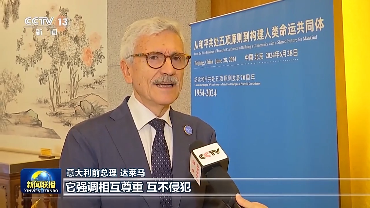 意大利前总理 达莱马:我们生活的世界正在经历一个非常困难的时期。一些残酷的冲突正在发生。我认为五项原则仍然是和平的基石,它强调相互尊重、互不侵犯,特别是不同社会制度的国家应该和平共处。