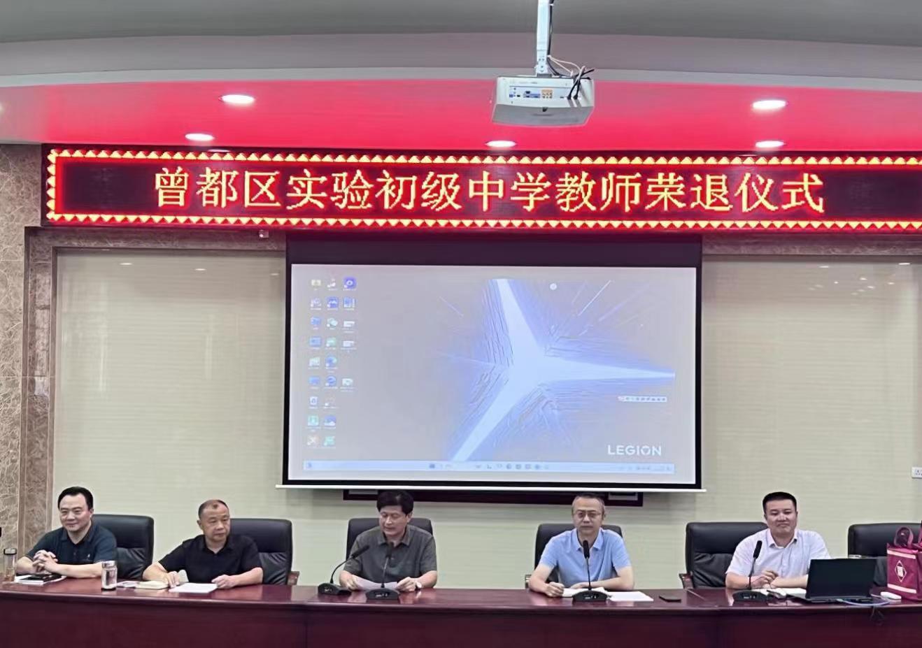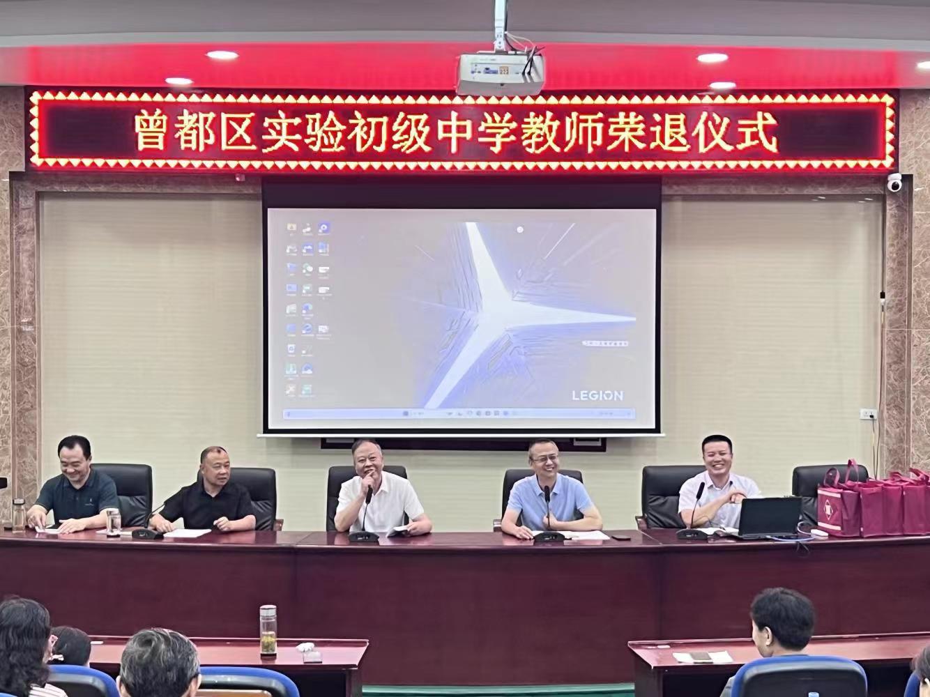 随州新闻网讯 (通讯员黎军)一支粉笔,行云流水;两袖清风,不染纤尘;三尺讲台,尽显风采;四季耕耘,硕果累累。为给退休教师教育生涯画上圆满句号,充分发挥榜样引领作用,激励青年教师奋进,恰逢“七一”建党节之际,曾都区实验初级中学为余文成等九位教师举行温馨的荣休仪式。