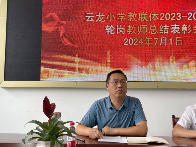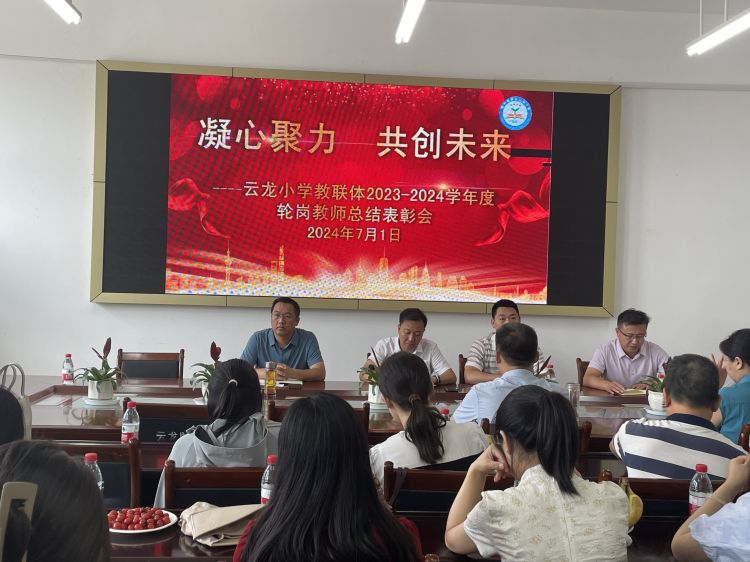 为了表彰先进树立典型,榜样示范引领前行,优化营商环境,深度推进教联体工作,为新学期教联体工作筹谋新篇。7月1日,云龙小学教联体召开轮岗交流教师总结表彰大会。
