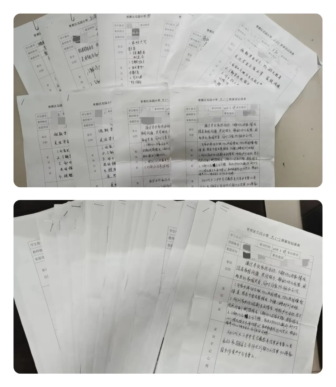 家访活动结束后,老师们把了解的情况、反映出的问题进行细致的记录,以便在后期的工作中能根据孩子的个体差异因材施教。