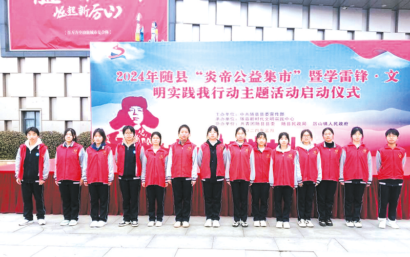 随县一中志愿服务队参加 2024 年随县“炎帝公益集市”暨学雷锋•文明实践我行动主题活动启动仪式