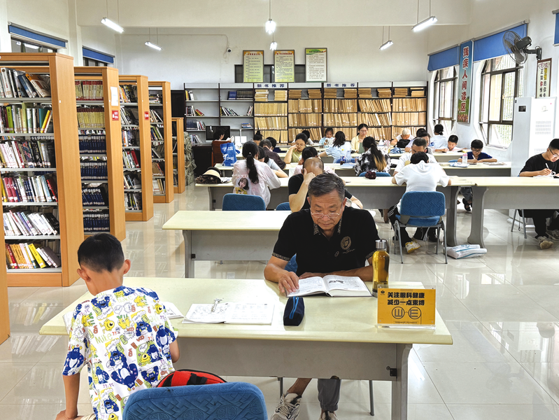 在少儿阅览室,不少家长正陪着孩子看书。实验小学六年级学生张子威正在家长陪同下写暑假作业,“这里学习氛围浓厚,遇到不会的问题也可以及时查参考书。”张子威家长说。