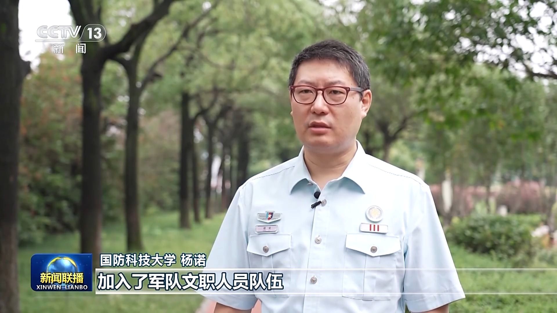 国防科技大学 杨诺:当初怀着科技强军、人才强军的理想,加入了军队文职人员队伍。这几年,大学推进建设高素质新型军事人才培养高地、国防科技自主创新高地,为我们提供了干事创业、实现价值的广阔平台,大家坚持立德树人、聚焦备战打仗,心无旁骛投入教学科研工作。现在文职人员政策制度越来越完善,越来越多优秀人才成为这支队伍的一员,我感到很自豪。