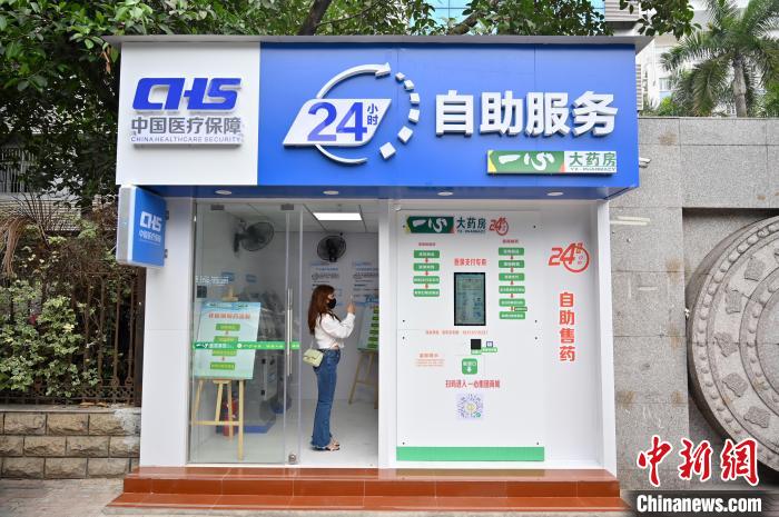 2022年4月27日,广西南宁,市民在“智慧药房”通过无人售药机选购药品。中新社记者 俞靖 摄