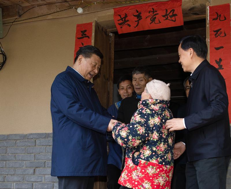 △2019年4月15日,习近平总书记在重庆石柱土家族自治县中益乡华溪村看望贫困户谭登周一家。