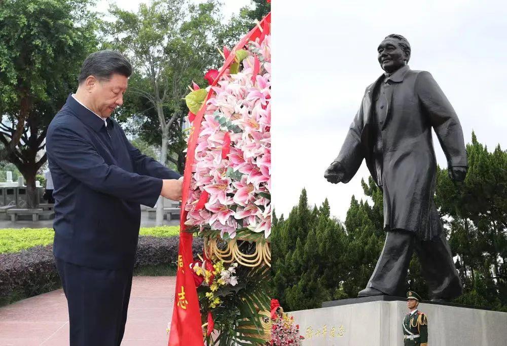 △2020年10月14日,深圳经济特区建立40周年庆祝大会在广东深圳市隆重举行,习近平总书记在会上发表重要讲话。这是当天下午,总书记来到莲花山公园,向邓小平同志铜像敬献花篮。