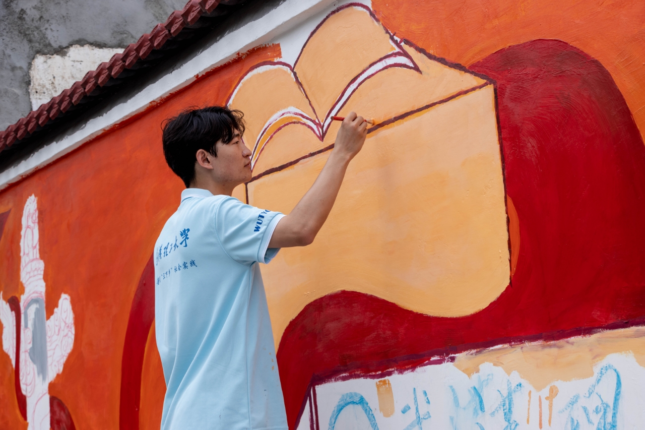 “这些天阴雨连绵,这帮大学生们就挤出休息时间,加班加点的画,实践活动结束前一天的凌晨才画完。”提起他们,顾娟连连竖起大拇指。