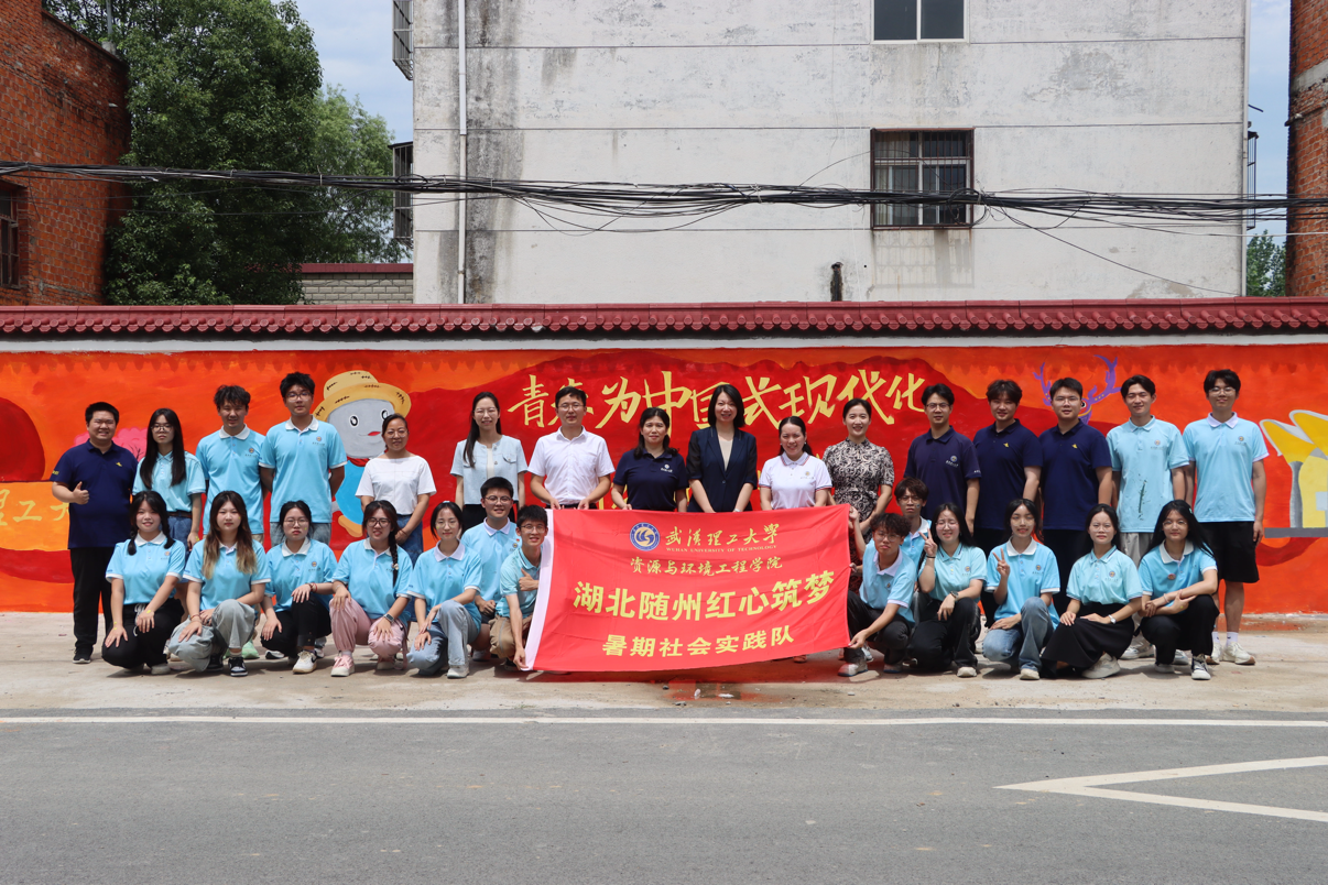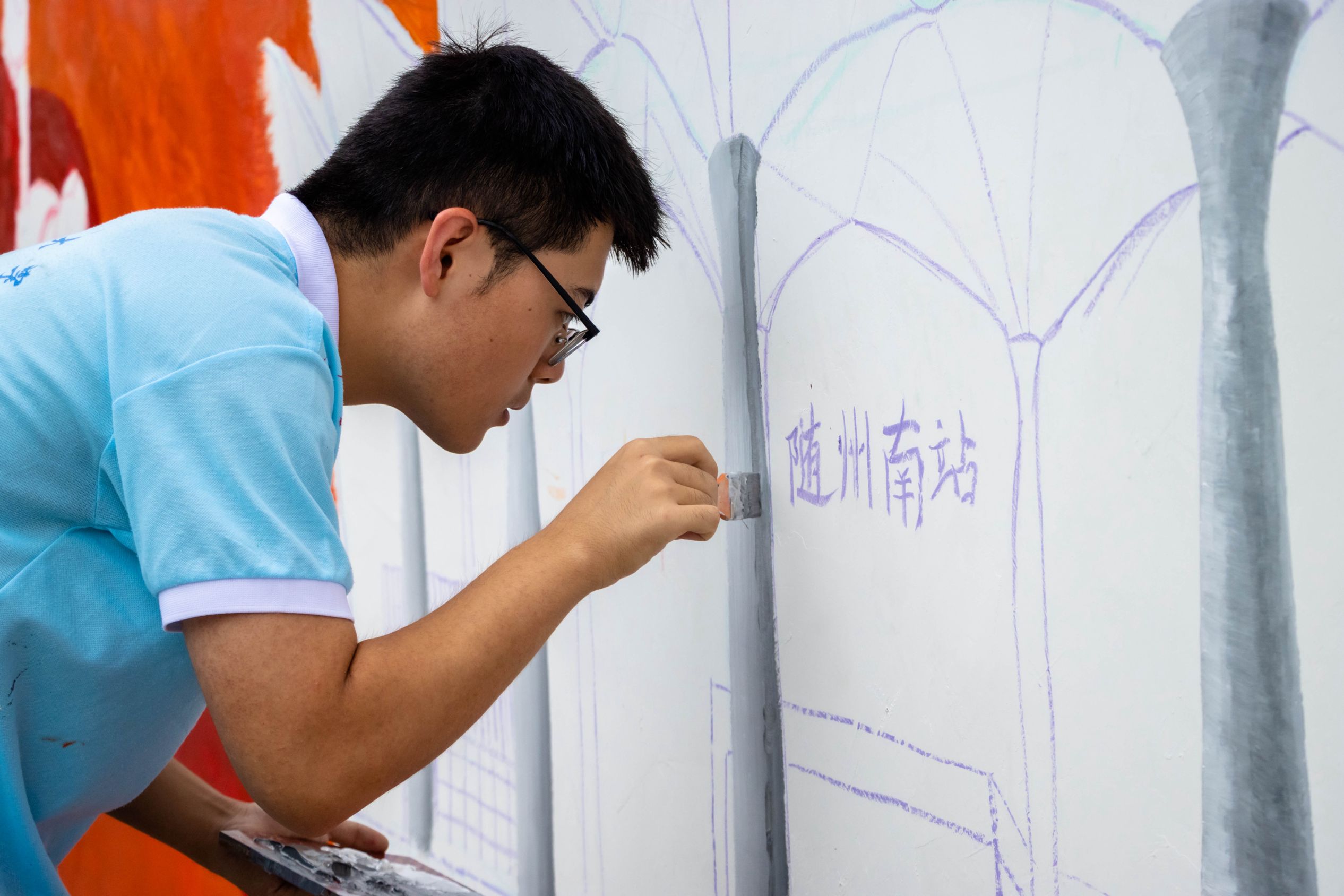 “这幅画用一条红丝带串联了武汉理工大学地标建筑南湖图书馆与随州南站、鹿角立鹤等本地文化元素,象征着我们与这里的亲密联系。”实践队队长王甲圣介绍道。这是他第二年到何店开展暑期学堂实践,这次来又见到了许多“老面孔”。