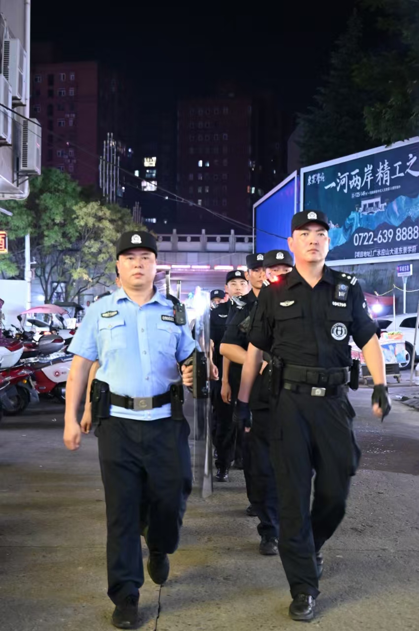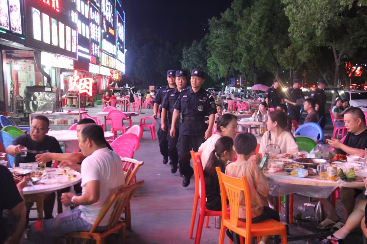 针对夜间消费特点,随州市公安局特巡警强化显性用警,屯警街面、动中备勤,严格落实联勤巡逻“四项机制”和“1、3、5分钟”快速反应机制,最大限度将警力摆在夜间消费集聚区,建立点、线、面、圈多维立体防控体系,全面提升社会面治安防控力和快速反应力。“每天都能看到警察在我们身边穿梭巡逻,在这里做生意很有安全感!”大润发夜市烧烤店老板张先生由衷感叹。