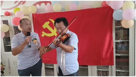 为了增添活动的浪漫氛围,现场还安排了精彩的文艺表演。老退役军人侯长国、余文业的二胡奏唱《卖花姑娘》将活动推向高潮,让金婚夫妇们在欣赏节目的同时,也感受到了社区对他们的关爱。