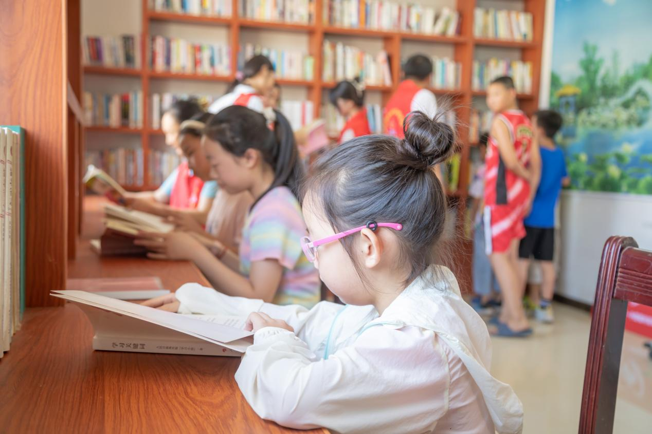在图书阅览室,志愿者带领孩子们挑选自己喜欢的书籍,孩子们有拿绘本的、科普的、故事的,大家都沉浸在书本的海洋中,尽情享受阅读带来的乐趣。