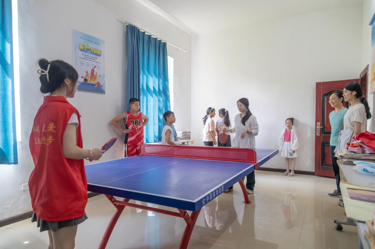 在文明实践所的乒乓球室,小朋友们你来我往,左右开弓,肆意挥洒着汗水。