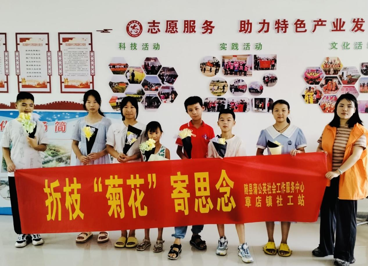 中元节,民间俗称“鬼节”、“七月半”。中元节是中国传统祭祀节日之一,带有祭祖和感恩的双重功能,孝文化是其精神内核,也是中国传统民俗节日中特殊的存在,是中国人对逝去亲人表达孝敬、思念的重要节日。为让孩子们了解传统文化的深刻内涵,发扬我们中华民族的传统文化,8月14日,随县蒲公英社会工作服务中心草店镇社工站联合岳家湾村开展了“折枝‘菊花’寄思念”中元节传统文化主题教育活动,活动邀请到7位小朋友参加,其中留守儿童3名。
