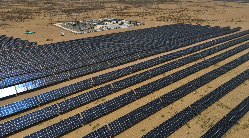 这是2023年3月18日在位于阿联酋阿布扎比南部的艾尔达芙拉光伏电站拍摄的光伏板。新华社发(中国机械设备工程股份有限公司阿布扎比分公司供图)