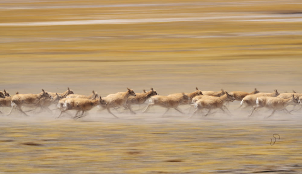 2024年6月13日,在羌塘国家级自然保护区,迁徙中的藏羚羊奔跑起来。新华社记者费茂华摄
