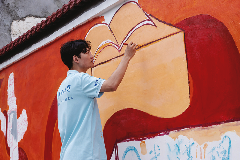 “这些天阴雨连绵,这帮大学生们就挤出休息时间,加班加点地画,实践活动结束前一天的凌晨才画完。”提起他们,顾娟连连竖起大拇指。
