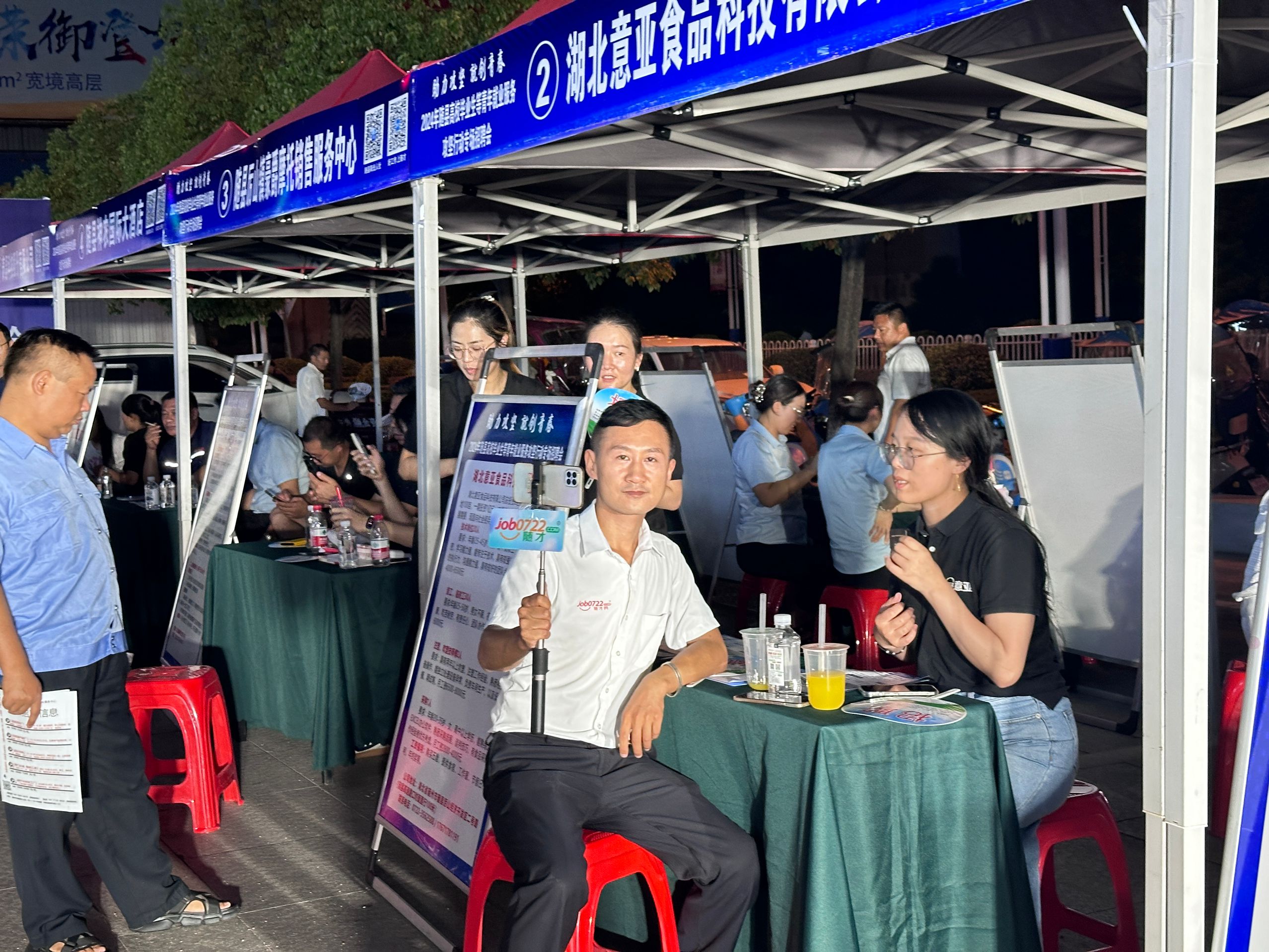 “大家好,2024年随县高校毕业生等青年就业服务专场招聘会,现在正式开始,我是今天的主播肖楚平......”7点钟线上直播带岗,也同时开始。此次直播带岗,除了继续在湖北公共招聘网线上直播以外,还打破常规的直播待岗形式,由室内带岗座谈的形式转变为室外现场与企业、求职者面对面交流的形式,开展直播带岗工作,并在随县零工驿站门前大厅同步播放,既能线上与企业互动,又能感受到现场的招聘氛围。为了让未能到现场的求职者及时了解岗位资讯、切身感受现场热度,本次招聘会同步在“湖北公共招聘网”进行线上直播招聘,与求职者屏对屏开展零距离云招聘,求职者通过直接互动,直观了解企业基本情况、工作生活环境、工资福利待遇等热点问题。直播期间,在线观看人数达3000人,线上投递简历190份。