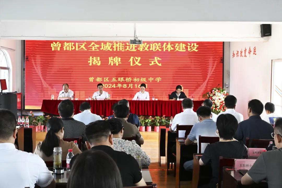 随州新闻网讯 (通讯员徐正艳、陈少莲、毛三鑫)8月16日,曾都区全域推进教联体建设揭牌仪式在五眼桥初级中学举行。