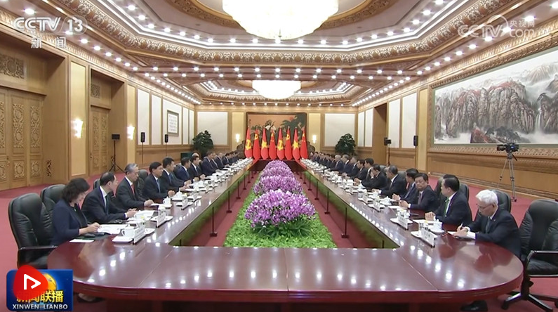 8月19日,中共中央总书记、国家主席习近平在北京人民大会堂同来华进行国事访问的越共中央总书记、国家主席苏林举行会谈。