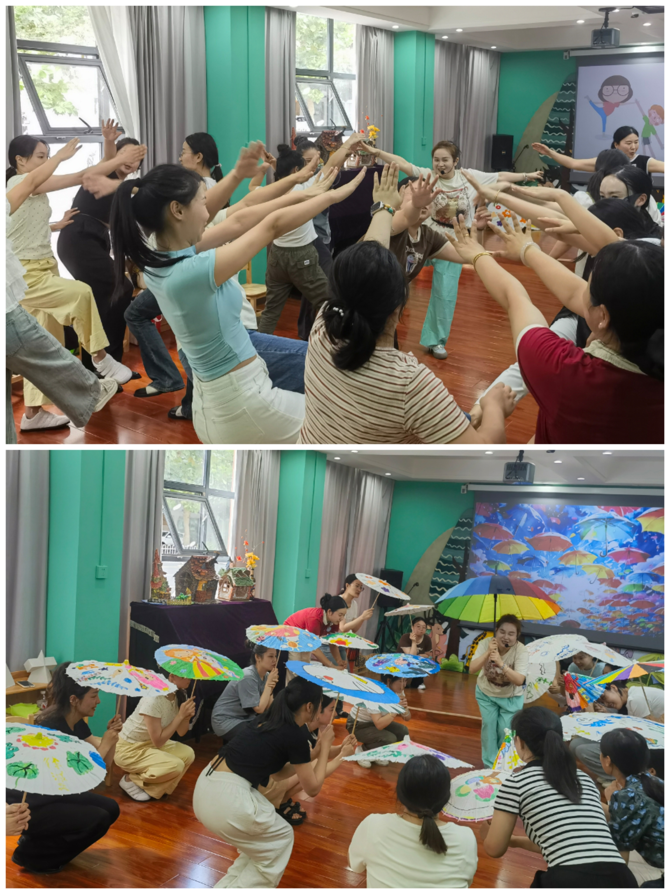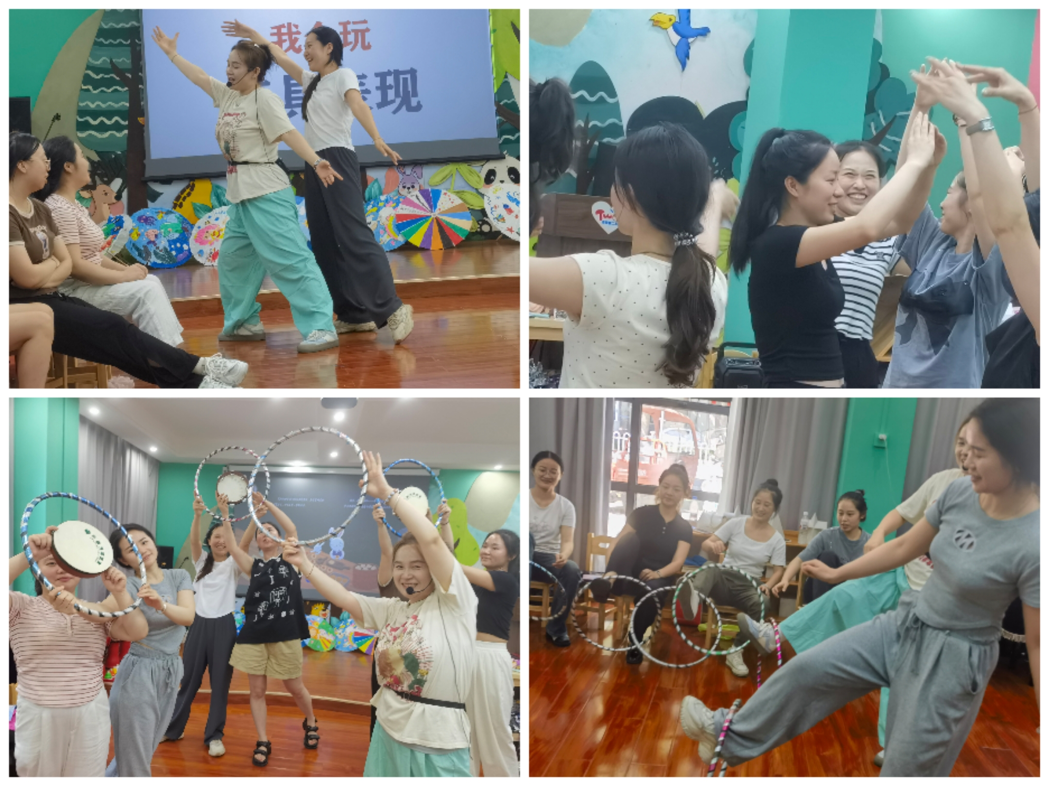 老师们认真学习,积极参与,时而化身可爱的动物,时而变成调皮的孩子,时而又是乐器演奏家、舞台的表演者……在各种角色的转换中不断超越与进步,提高音乐活动驾驭能力的同时,也深刻感悟到音乐教学的魅力所在。