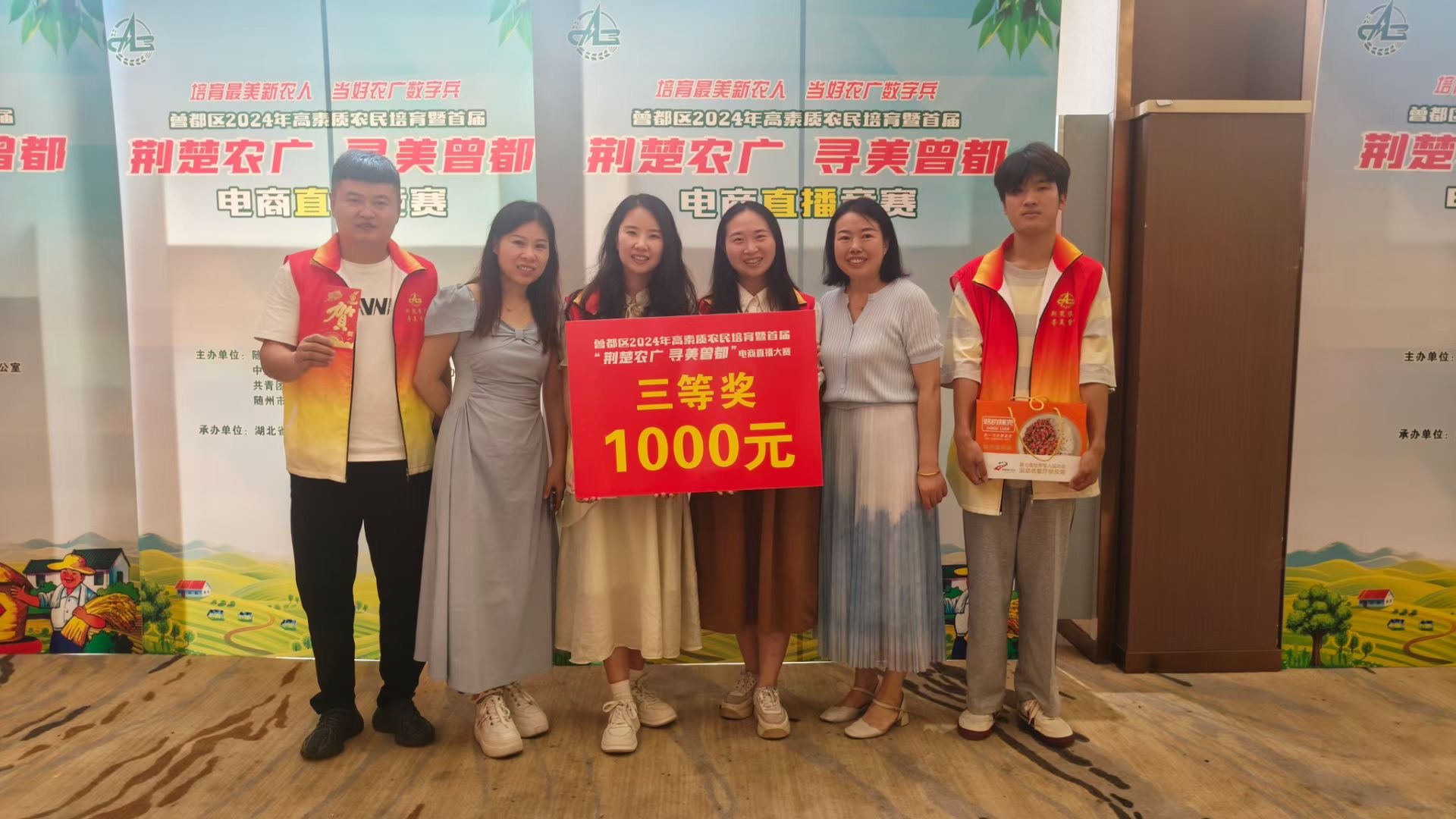 近日,为期12天的曾都区2024年高素质农民培育暨首届“荆楚农广 寻美曾都”电商直播竞赛活动正式结束。曾都区工商联组织8名民营企业家参加培训活动,在直播竞赛环节,曾都区青年企业家商会成员单位绿美宝食品以及商会成员随州主持人小乔团队充分发挥创意与团队协作精神,将随州香菇酱、蜂蜜、香稻等特色农产品通过镜头展现给全国观众,短短1小时在直播间带货一万元和两千元,分别荣获大赛二等奖和三等奖。