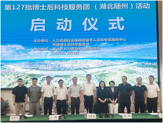 8月26日上午举办了博士后科技服务团(湖北随州)活动启动仪式,人力资源和社会保障部留学人员和专家服务中心(中国博士后科学基金会)基金管理处副处长柴颖,湖北省人力资源和社会保障厅党组成员、副厅长王伟雄,随州市人民政府副市长徐锋出席并致辞。