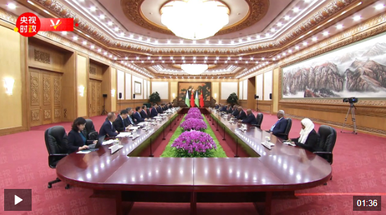 习近平指出,盖莱总统出席了中非合作论坛成立以来举办的所有峰会,是论坛一路成长壮大的见证者和促进者。我对此高度赞赏,愿同你密切协作,推动这次峰会取得圆满成功。今年是中吉建交45周年。45年来,中吉两国肝胆相照、患难与共,经济合作互利互惠,人民往来相知相亲,堪称南南合作的典范。