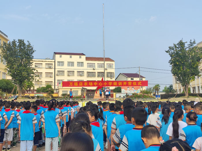 随州新闻网讯 (通讯员刘珍)纵有骄阳酷暑热,少年意气当自强!为提升学生身体素质,增强学生国防意识,树立不怕苦、不怕累的精神,使学生有一个良好的精神状态投入到新学期的学习生活中去,为新学期创建优良班风校风奠定基础,万福店农场中心小学规训活动今日正式开营!