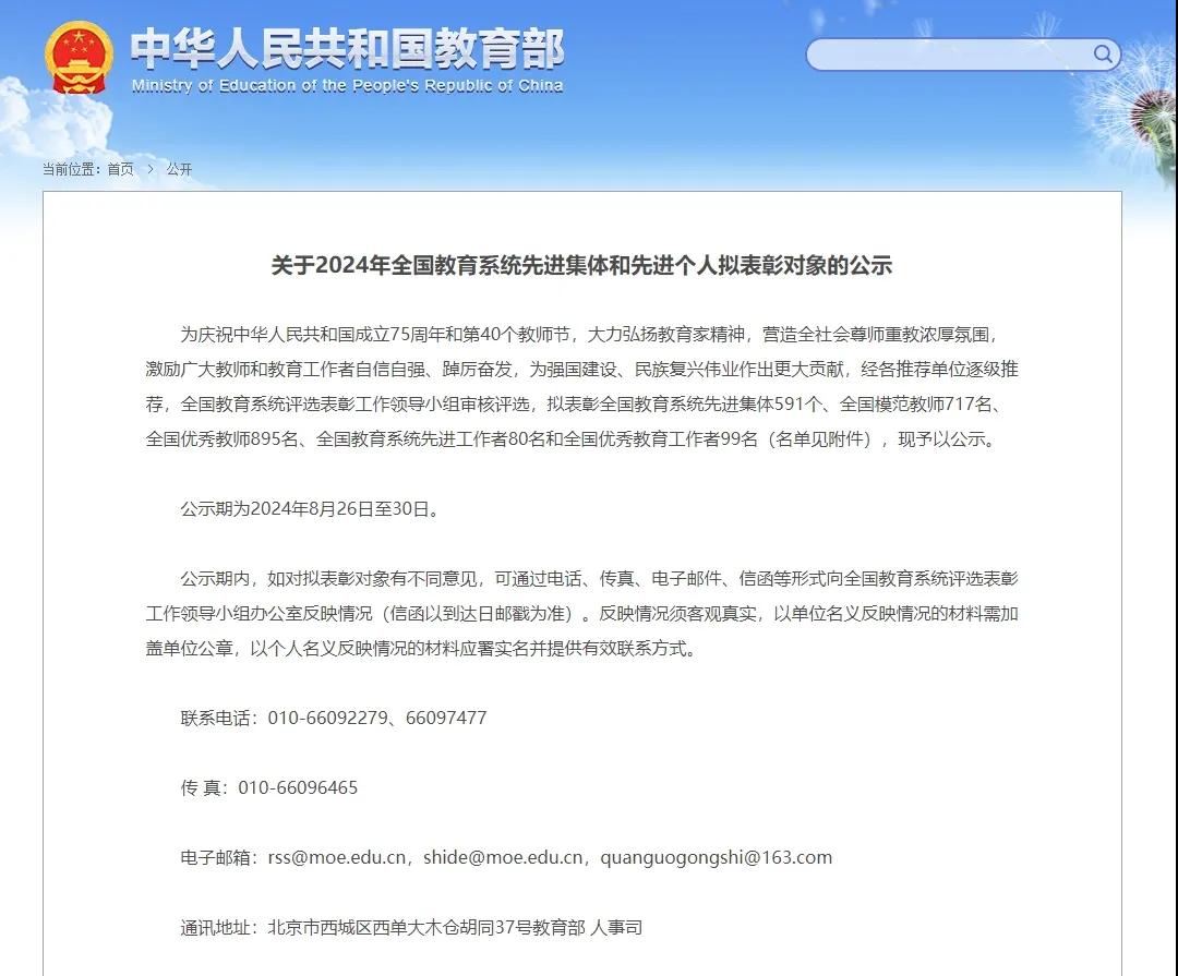 第40个教师节即将到来,教育部发布《关于2024年教育系统先进集体和个人拟表彰对象的公示》,随县炎帝学校榜上有名,是我市唯一一所学校荣获此殊荣。