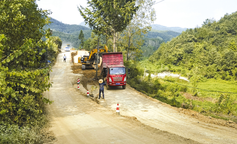2023年4月动工兴建的“均洪线”是连接随县均川镇和洪山镇的重要农村公路,全长39.4公里。该路是随县县域农村公路提档升级重点工程,此前4米宽的水泥路面升级为6米宽的沥青路面。目前,均川镇路段已建成通车,预计今年年底全线建成通车。图为9月4日,“均洪线”三里岗镇新集村路段建设现场。(随州日报全媒记者李文军摄)