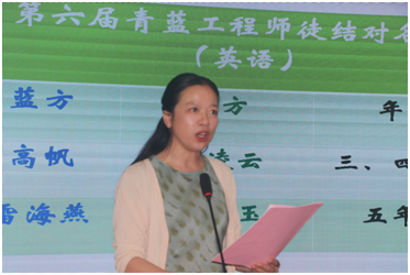 本次师带徒活动由教科室王珍珍主任主持,全体教师参加了此次活动。她带领老师们学习东关小学“青蓝工程”师徒结对方案。并指出希望师傅们主动热情无私地传授教育、教学经验,引导徒弟们严于执教、勤于学习、努力工作。希望徒弟们虚心学习,争取一年入门,两年达标,三年优秀。