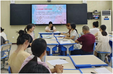 之后,光化小学周争主任发言。周主任表示新教材的推出旨在适应教育变革和学生需求,我们要利用这次培训推动语文教学的改革和创新,激励教师尝试新教学法,提升学生的语文核心素养和综合能力。她还提到,通过建立学习和交流平台,分享新教材的应用心得,可以共同提升教育质量,助力学生成长。