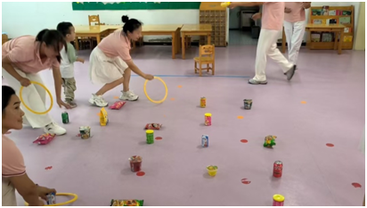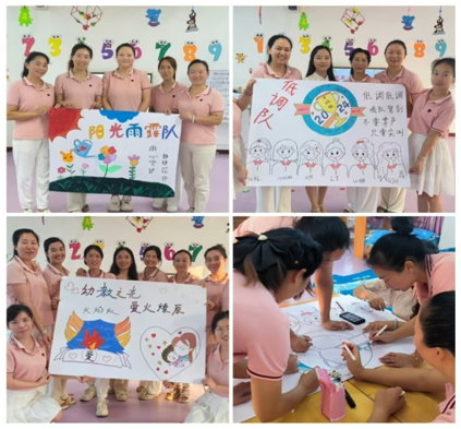 老师们以年级组为单位组成团队,迅速发挥想象和创意,制作团队海报,确定团队口号,一幅幅精美的海报就新鲜出炉了。大班组的老师们准备了精彩的表演,优美的歌声,灵动的舞姿,带给大家视听享受。 激动人心的套圈游戏开始了,大家积极参与,斗智斗勇,欢笑声回响在整个活动场地。活动最后,全体教师还进行了集体朗诵《一起守护》。