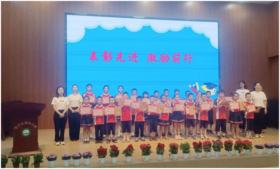 会上曾都区鹿鹤小学杨副书记宣读了2023-2024学年度市级、区级和校级表彰名单。表彰了上一学年度的学习楷模、品德典范:“鹿鹤好少年”。